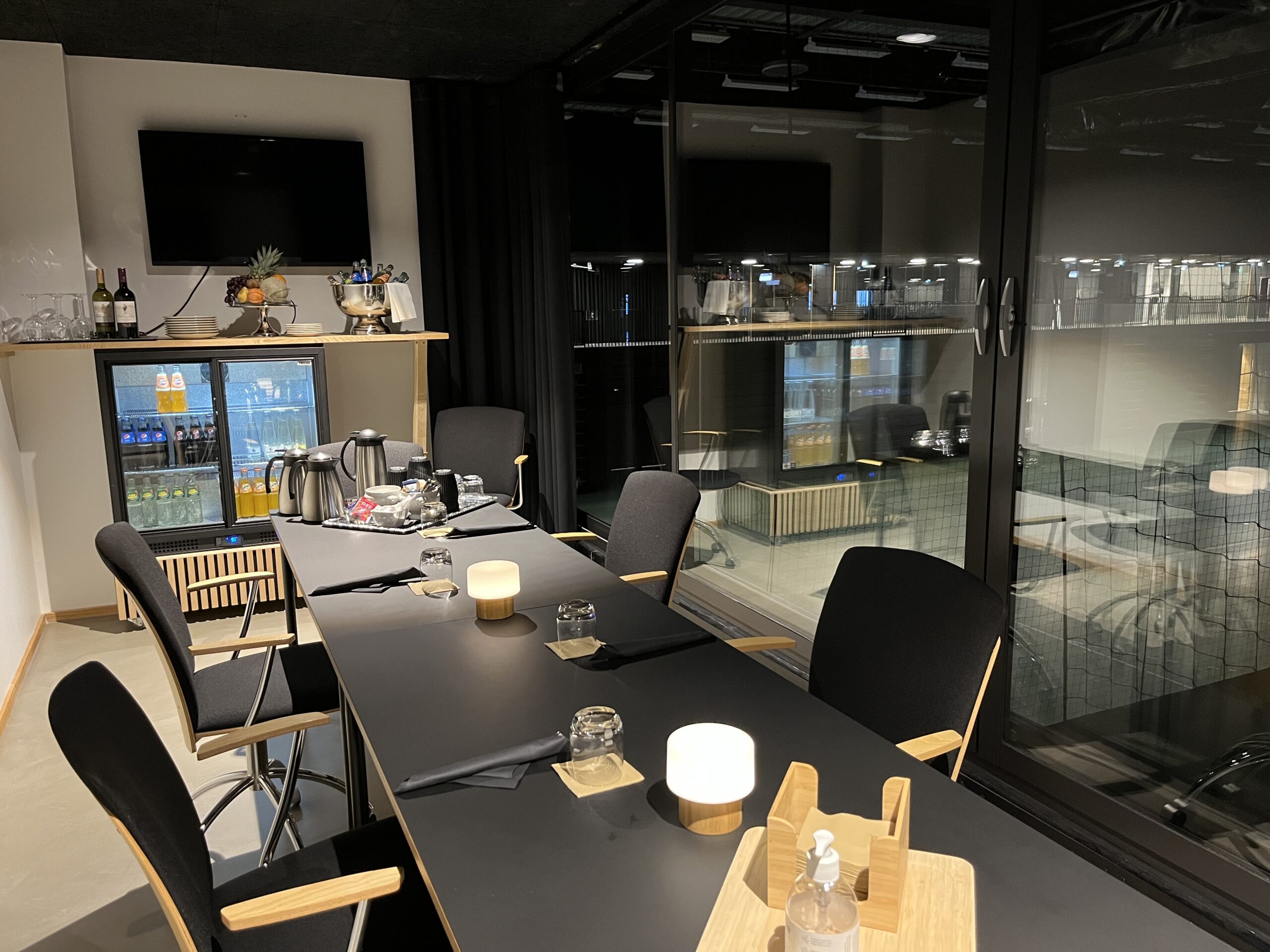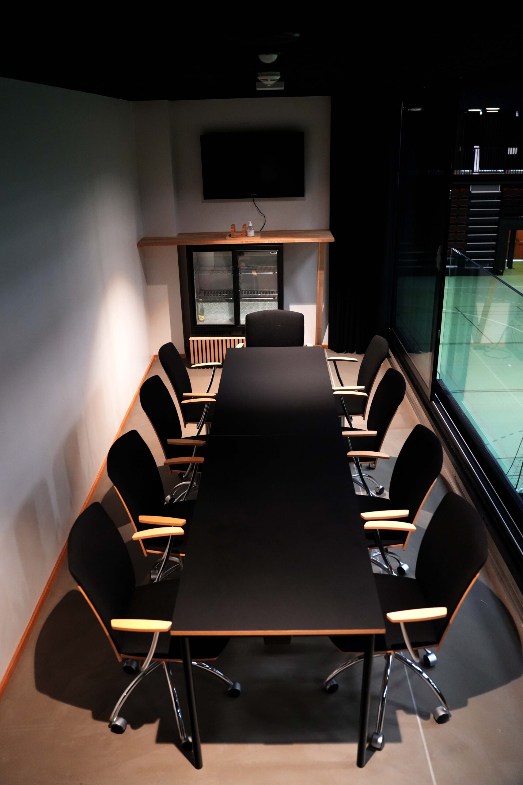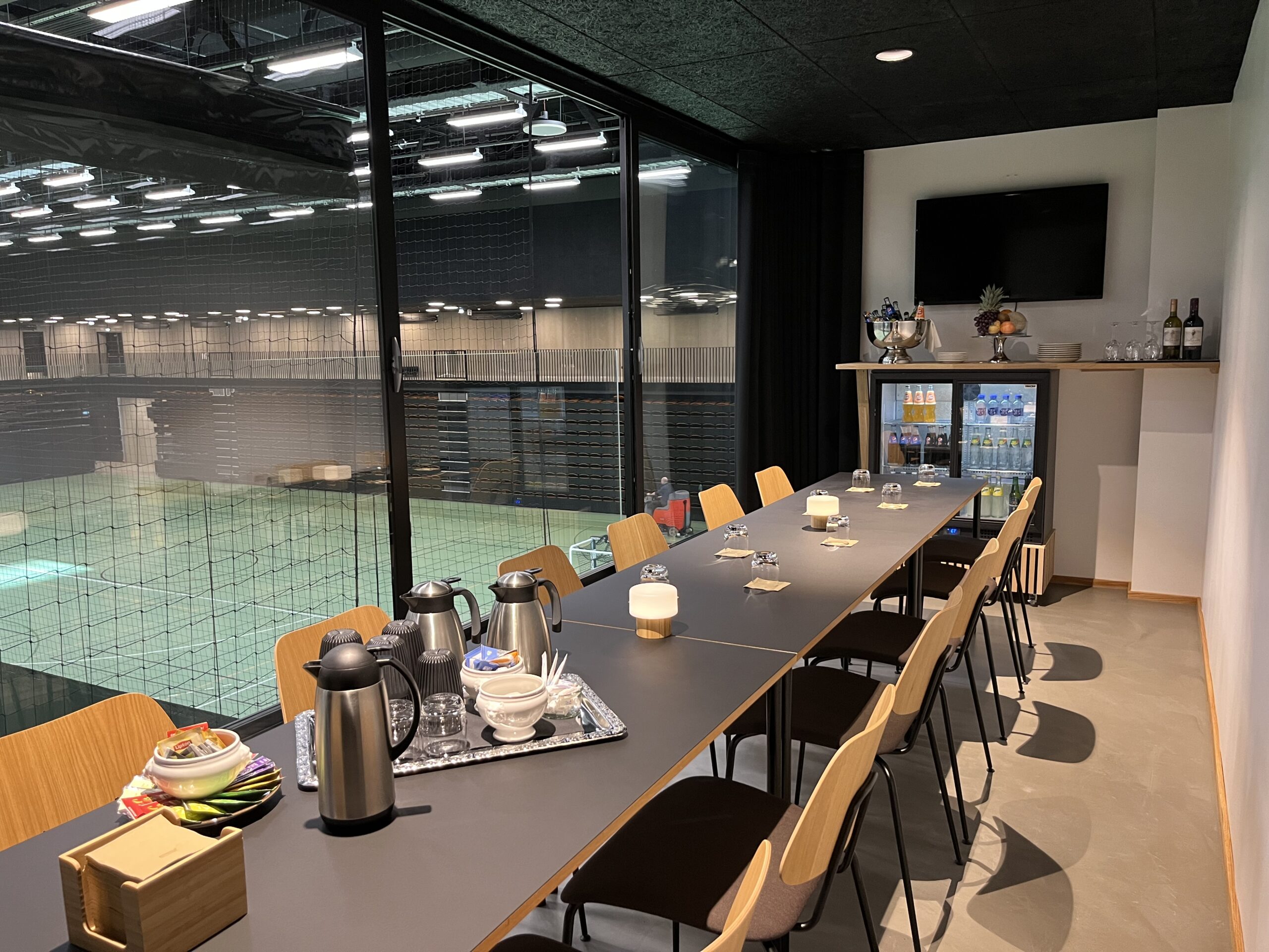 De to skybokse passer perfekt til bestyrelses- og gruppemøder. Skyboksene er hyggelige men også praktisk indrettet. Skyboksene er placeret centralt i Arena 1, hvilket giver et godt udsyn ud over multiarenaen.